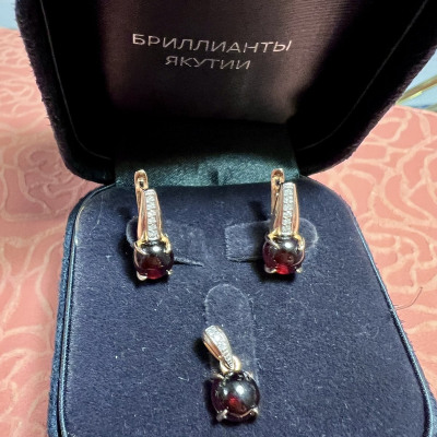 2 гранатами природными, 3.65 карат, тип огранки Б;