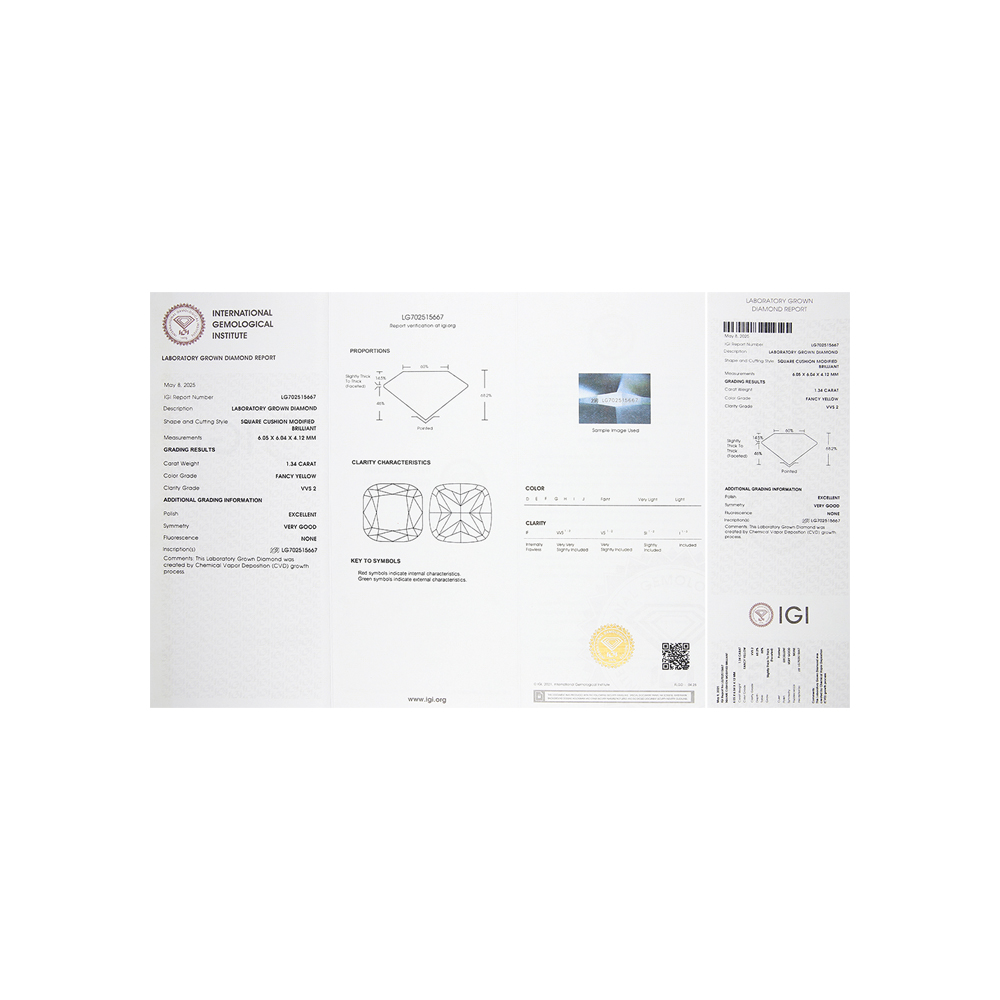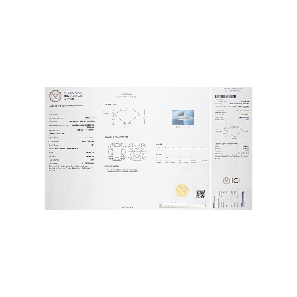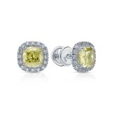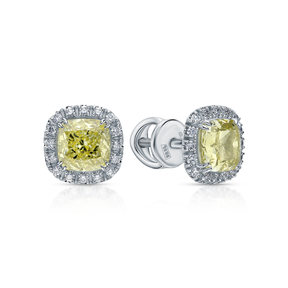 Серьги с 2 бриллиантами выращенными, 2.48 карат, огранка кушон 57 граней, цвет Желтый, чистота 5, тип огранки А;