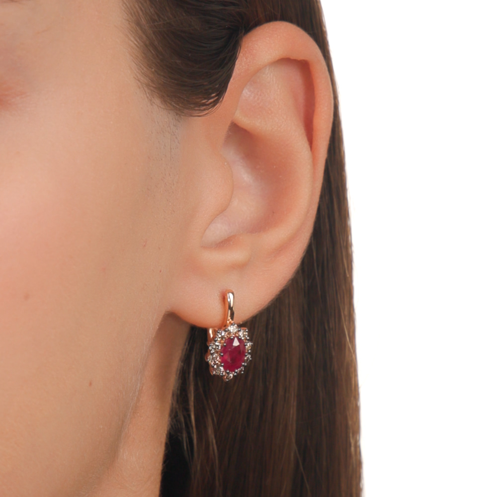 Золотые серьги с бриллиантами коньячными природными и рубинами природными