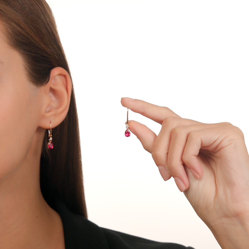 Серьги с 2 рубинами природными, 2.1 карат, цвет 2, чистота 2, тип огранки Б;