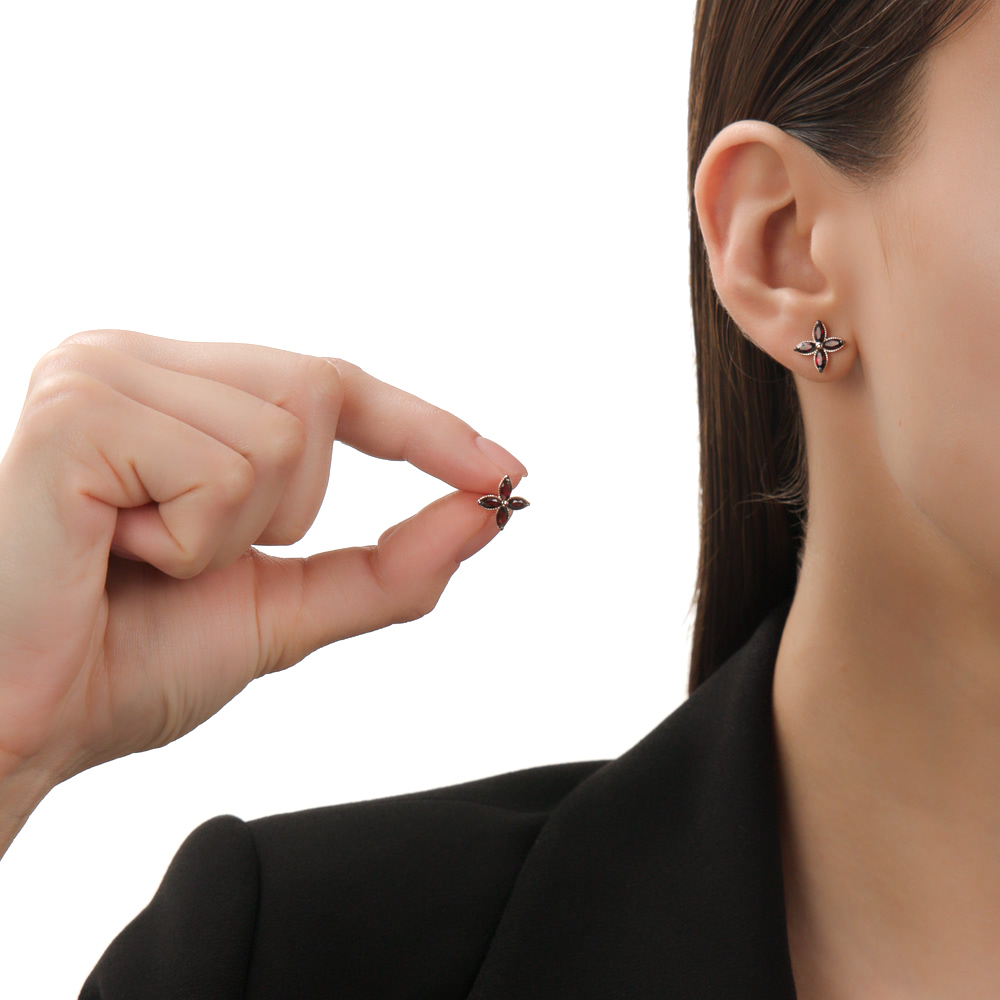В редких случаях характеристики украшения или упаковка могут иметь отличия от представленных на фото или в описании.Серьги с 8 гранатами природными, 1.38 карат;