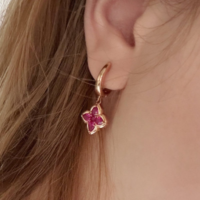 Золотые серьги с наноситаллами рубин