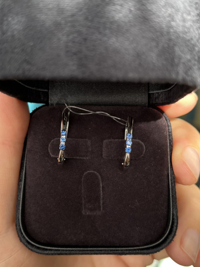 Серьги с 6 сапфирами природными, 0.23 карат, цвет 2, чистота 2, тип огранки В;