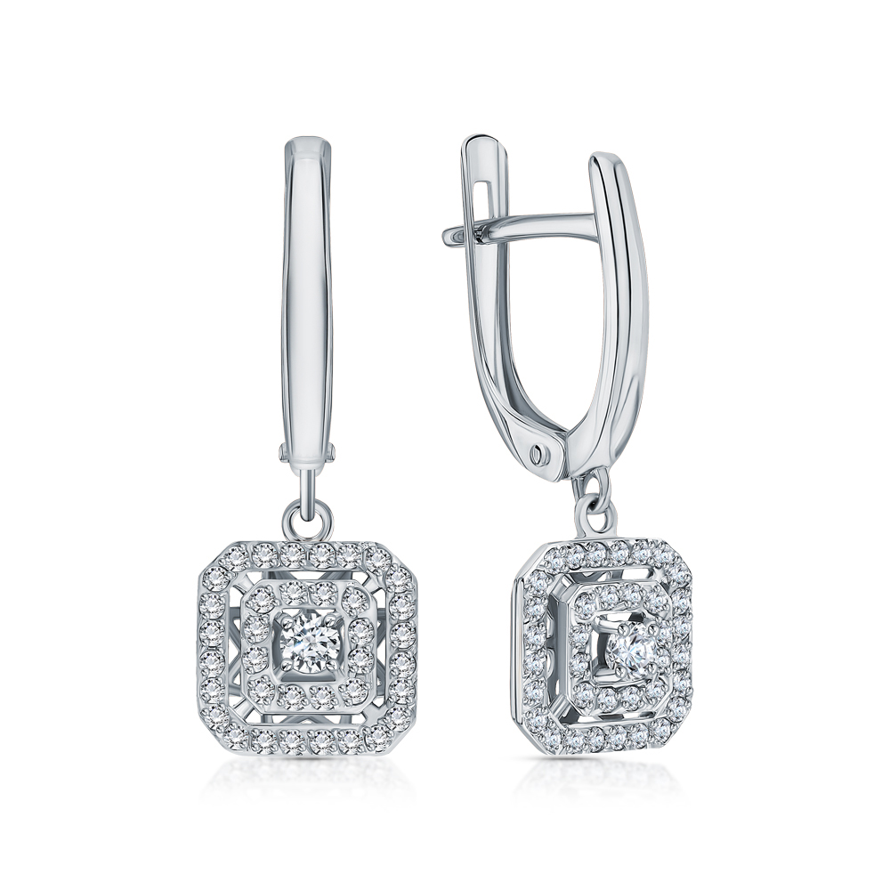 В редких случаях характеристики украшения или упаковка могут иметь отличия от представленных на фото или в описании.Серьги, вставка: фианитом бесцветным;
