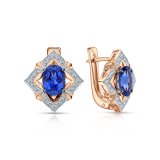 Золотые серьги с бриллиантами природными и сапфирами выращенными