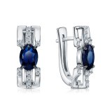 Золотые серьги с бриллиантами природными и сапфирами выращенными