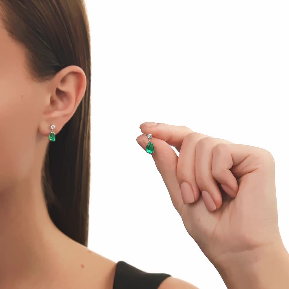 Серьги с 2 изумрудами выращенными Колумбия, 1.87 карат;