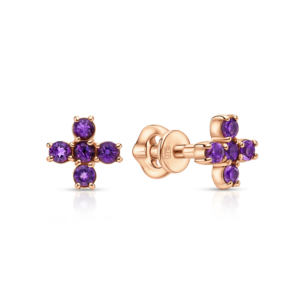 Золотые серьги с аметистами природными