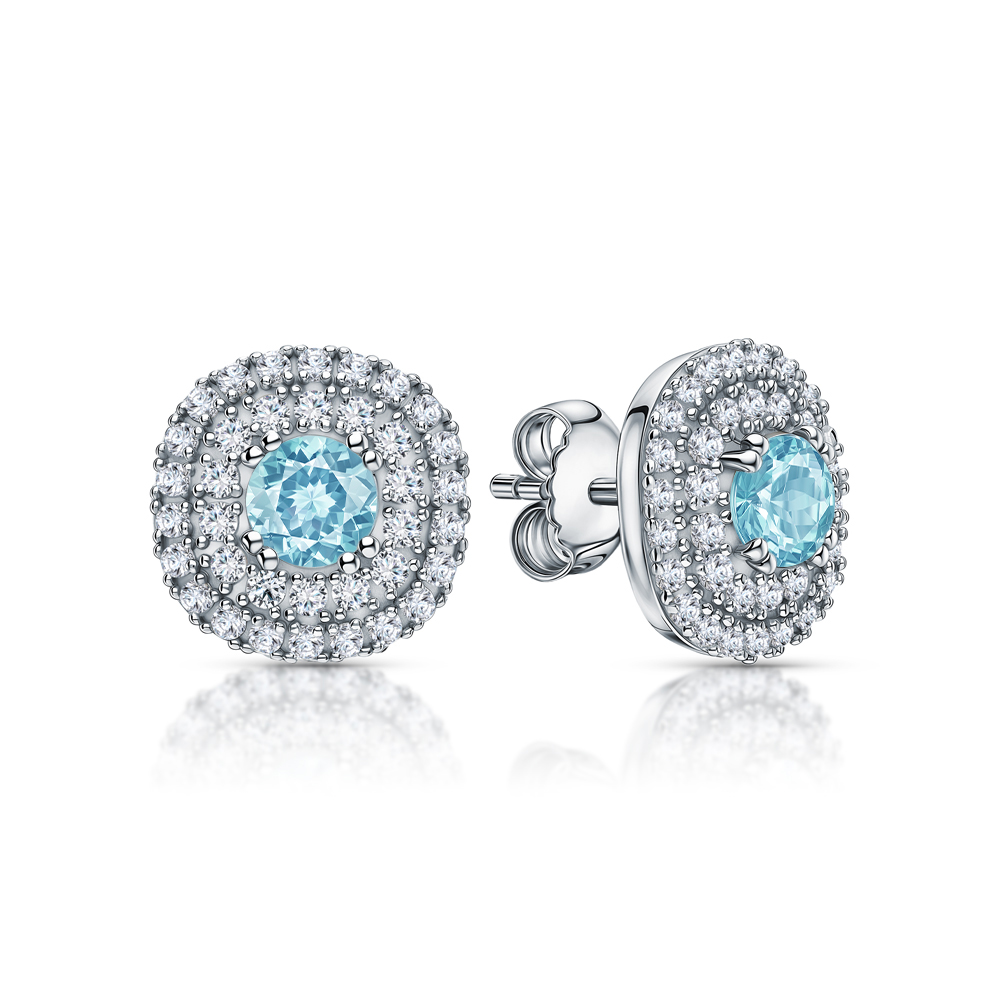 Серьги с 2 топазами скай природными, 1.2 карат;