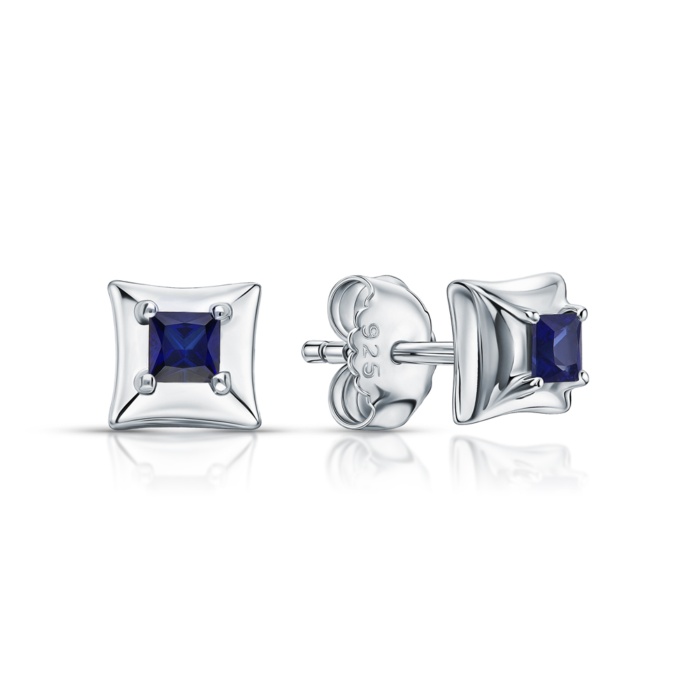 Серьги, вставка: корунд синтетический синий;