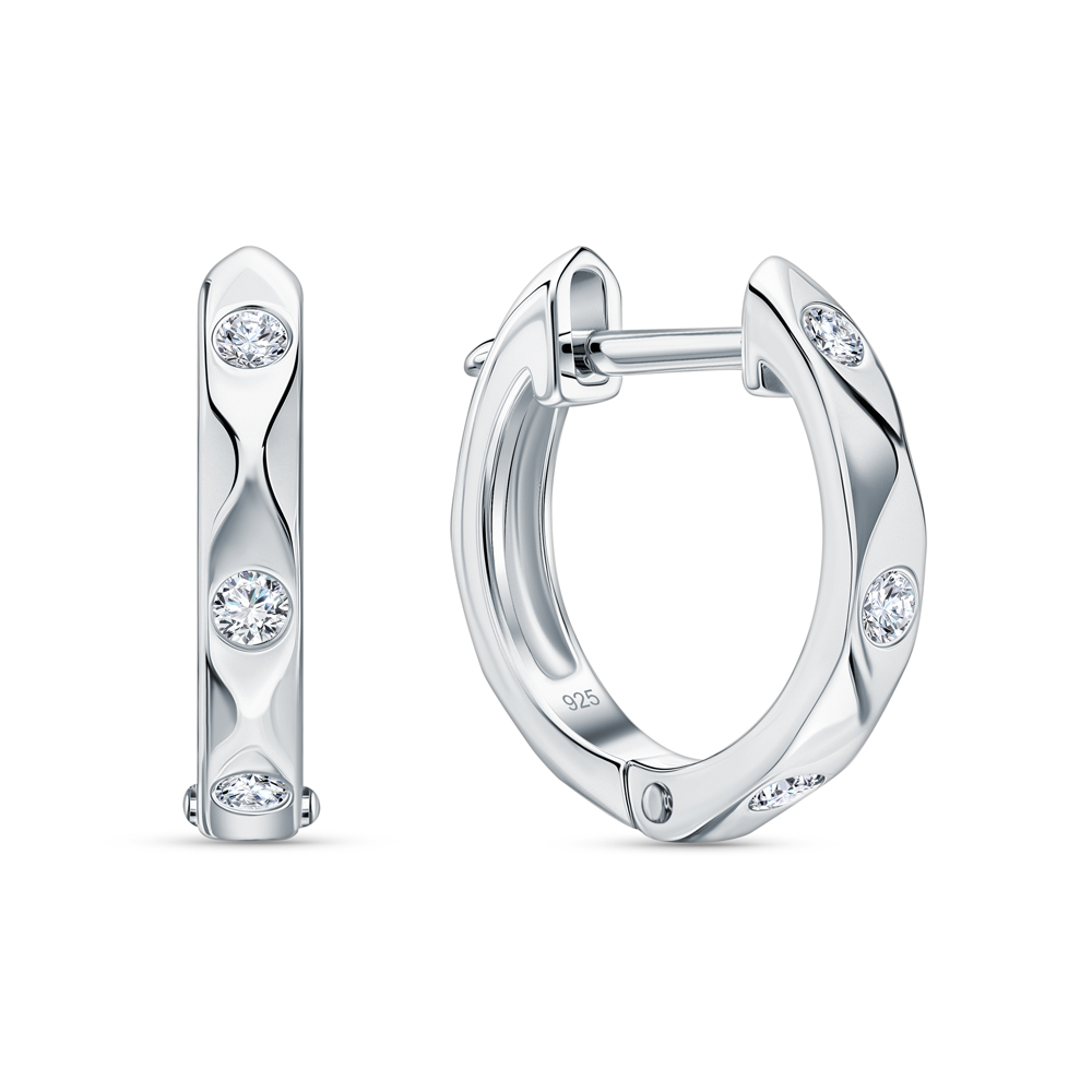 Серьги с 6 бриллиантами выращенными, 0.15 карат, огранка круг 57 граней, цвет 3, чистота 5;