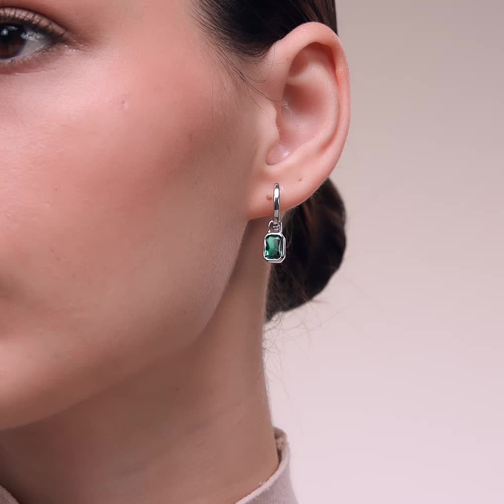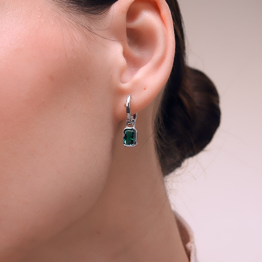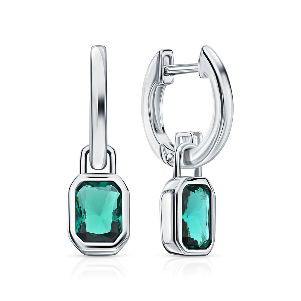 Серебряные серьги с изумрудами выращенными