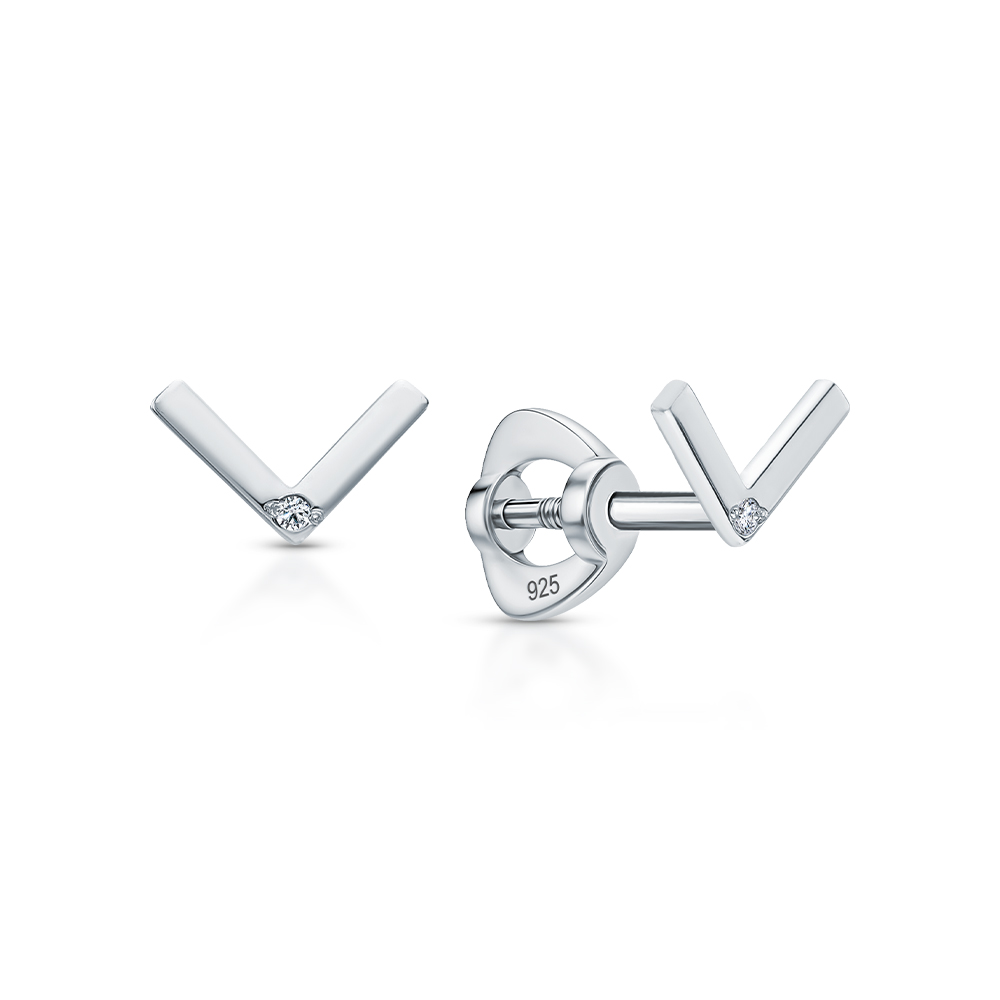 Серьги с 2 бриллиантами природными, 0.009 карат, огранка круг 17 граней, цвет 3, чистота 3, тип огранки Б;