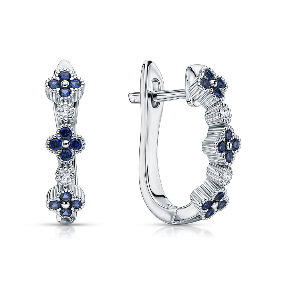 Серьги, вставка: корунд синтетический синий;