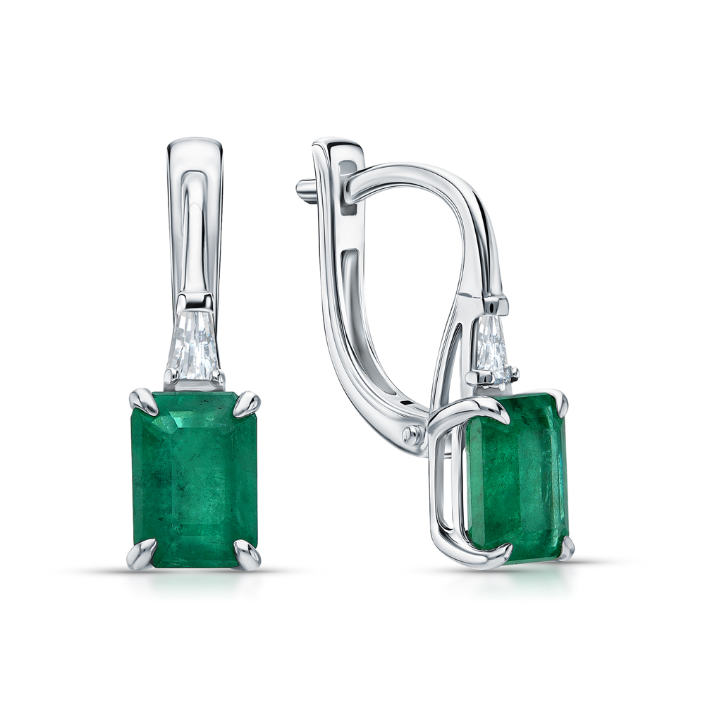 Золотые серьги с бриллиантами природными и изумрудами природными