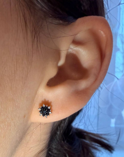 2 сапфирами черными природными, 0.08 карат;