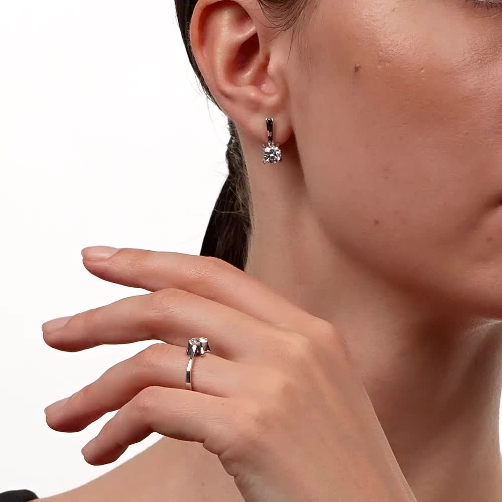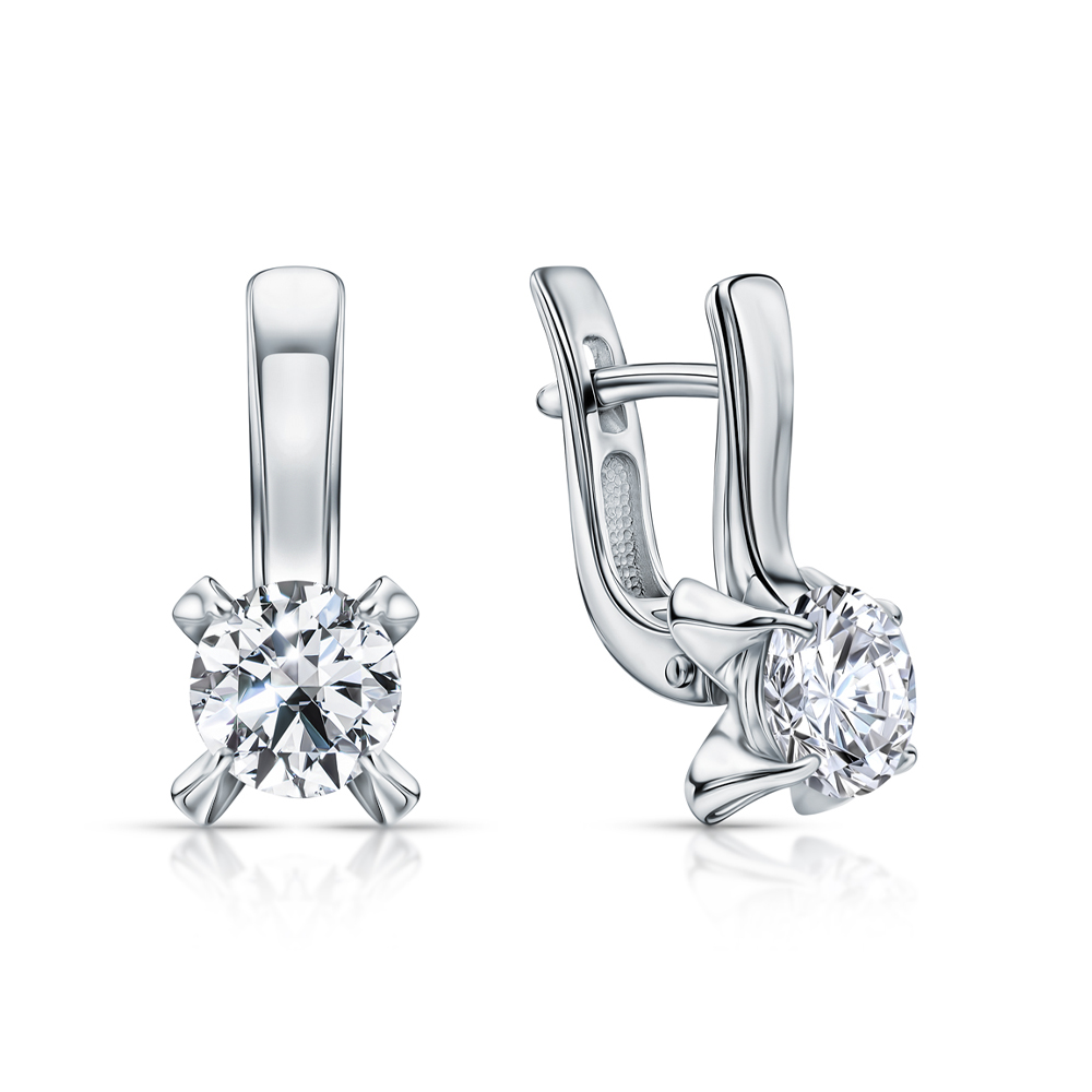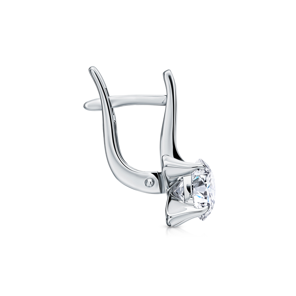Серьги с 2 бриллиантами выращенными, 1.3 карат, огранка круг 57 граней, цвет 4, чистота 5, тип огранки А;