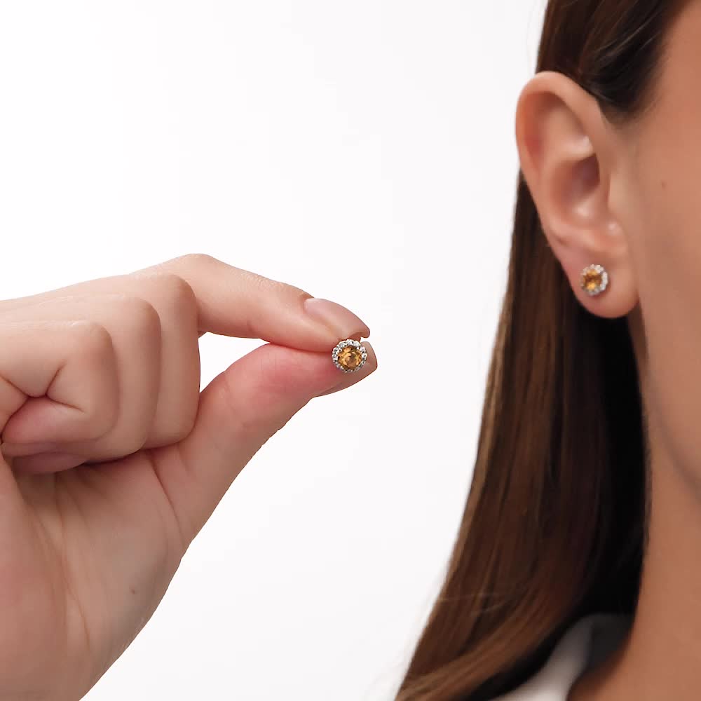 Серебряные серьги с фианитами и цитринами природными