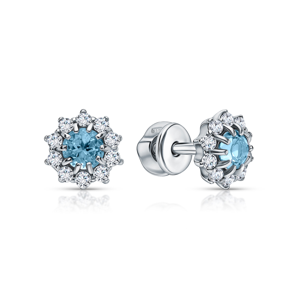 Серьги с 2 топазами скай природными, 0.6 карат;