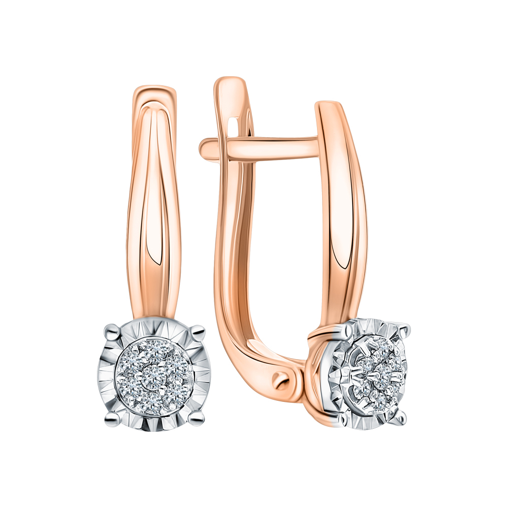 Серьги с 2 бриллиантами природными, 0.01 карат, огранка круг 57 граней, цвет 3, чистота 6, тип огранки А;