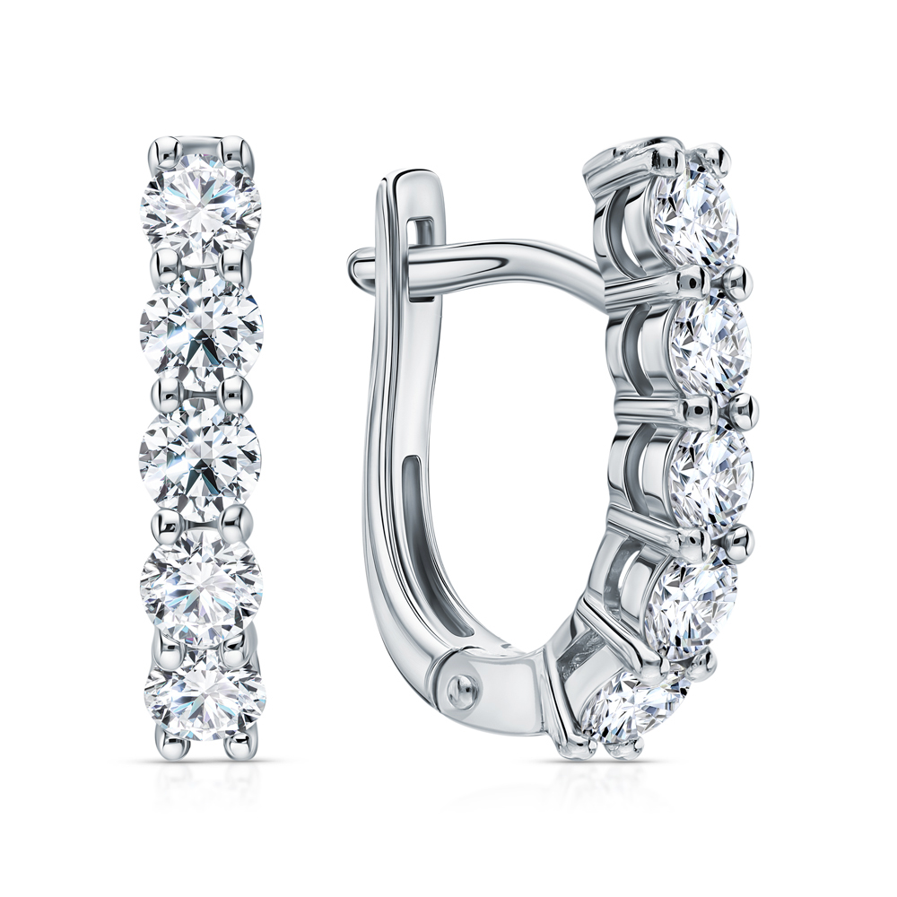 Серьги с 10 бриллиантами выращенными, 1.28 карат, огранка круг 57 граней, цвет 3, чистота 5, тип огранки А;