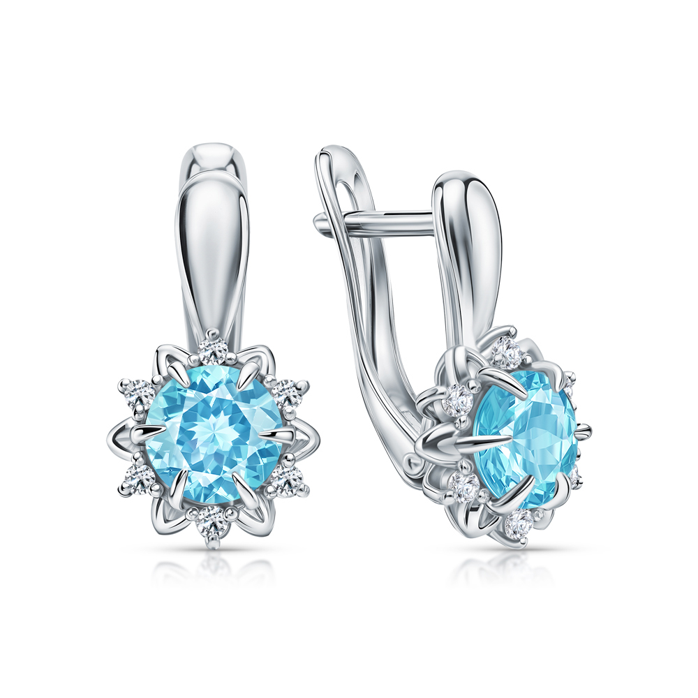 Серьги с 2 топазами скай природными, 1.9 карат;