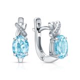 Золотые серьги с бриллиантами природными и топазами природными