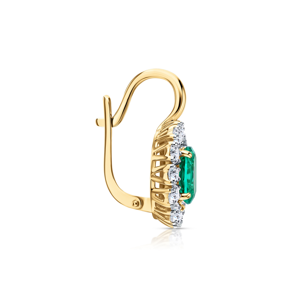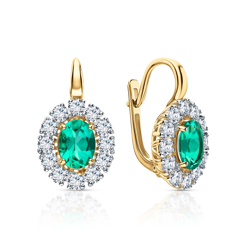 Золотые серьги с бриллиантами выращенными и изумрудами выращенными