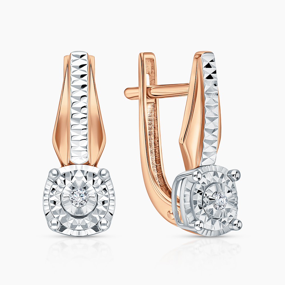 Серьги с 2 бриллиантами природными, 0.03 карат, огранка круг 57 граней, цвет 3, чистота 6, тип огранки А;