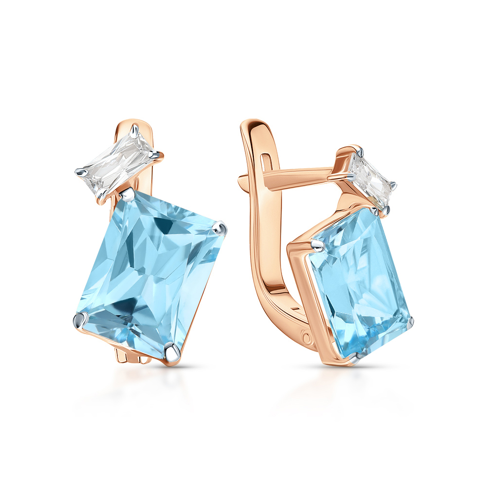 Золотые серьги с фианитами и топазами природными