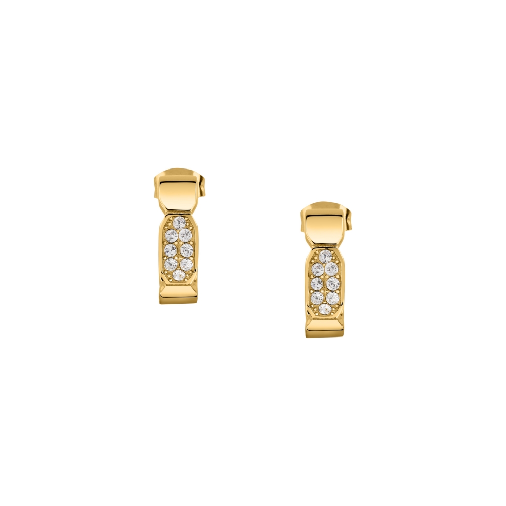 Серьги из коллекции бижутерии KARL LAGERFELD Crystals. Яркий дизайн изделия: вставка из бесцветных кристаллов из стекла на стальном корпусе цвета желтое золото, переосмысливает визульные коды бренда, следуя неповторимому дерзкому стилю кутюрье. Тип серёжек: пусеты. Размер изделия 1,6 см. Гарантия 14 дней.