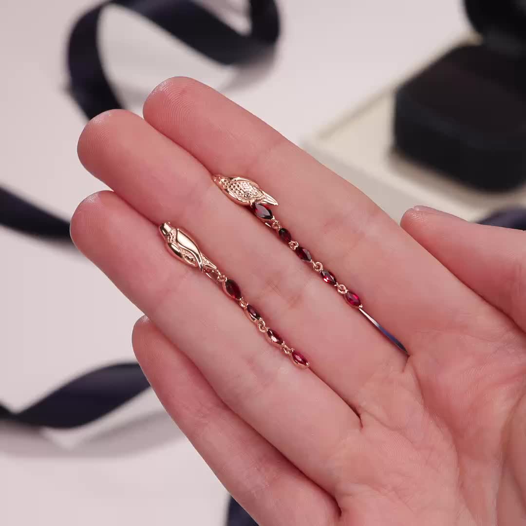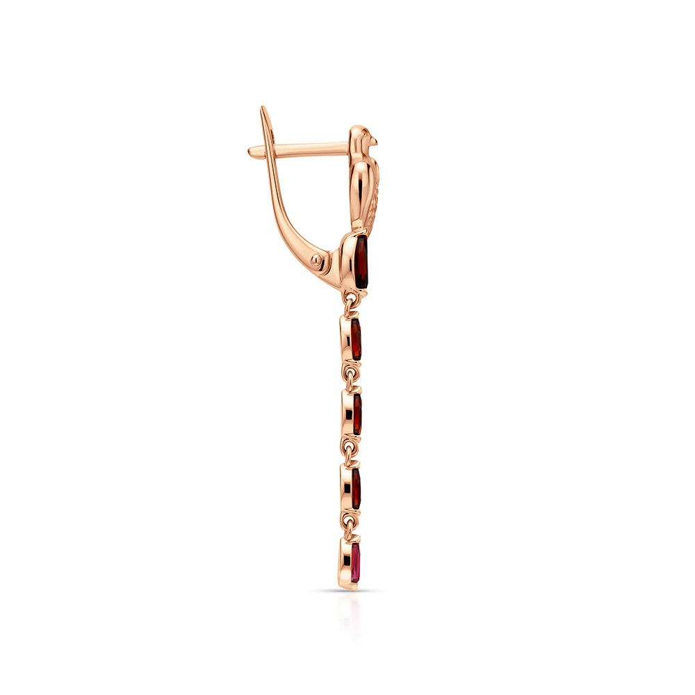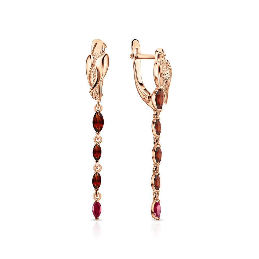 Золотые серьги с гранатами природными и рубинами природными
