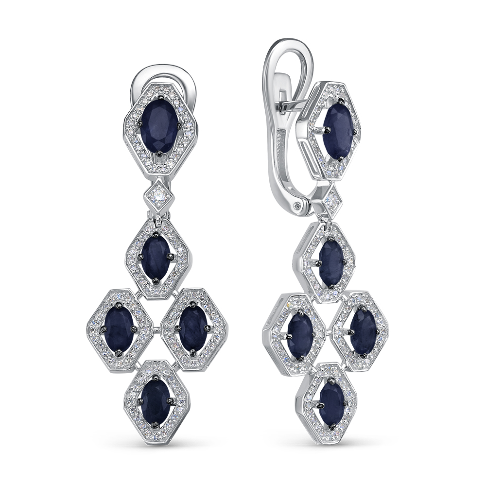 Золотые серьги с бриллиантами природными и сапфирами природными