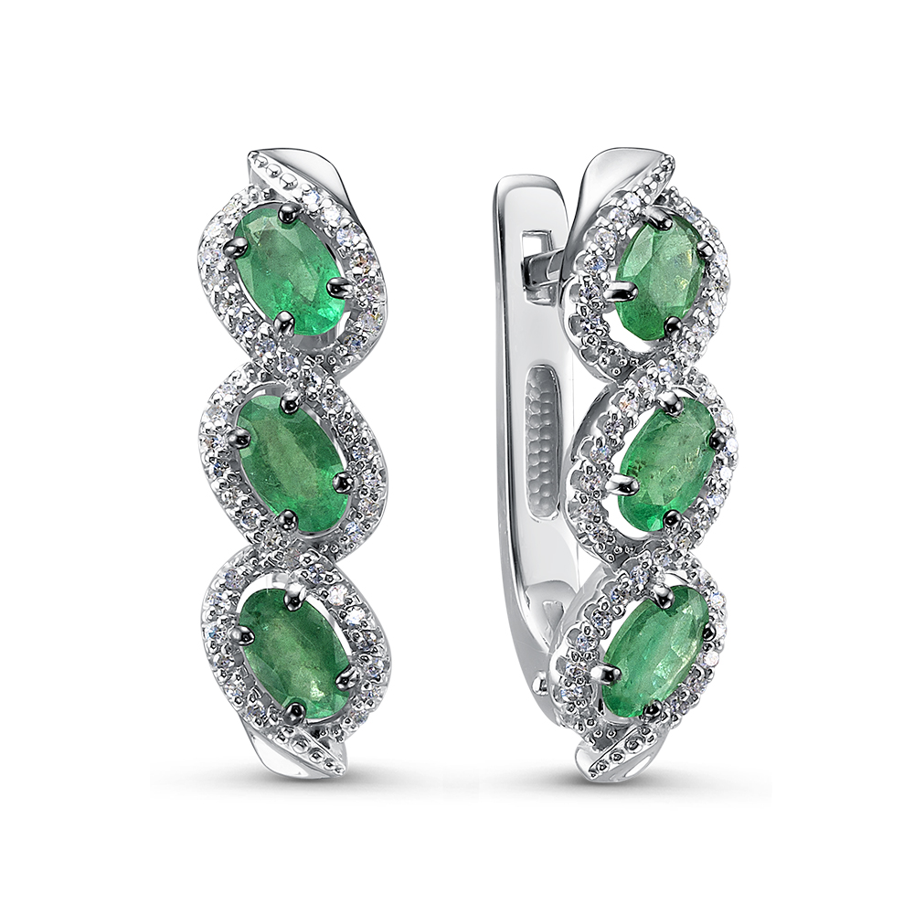 Золотые серьги с бриллиантами природными и изумрудами природными