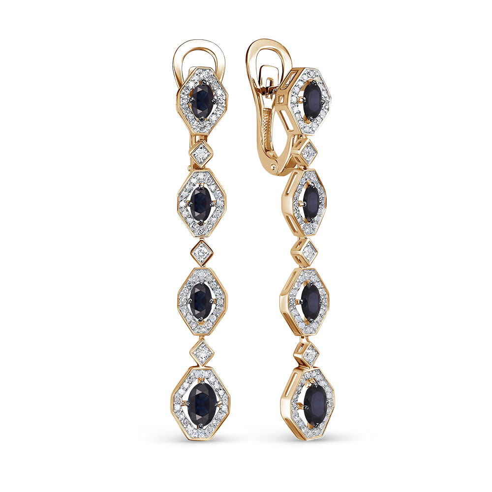 Золотые серьги с бриллиантами природными и сапфирами природными