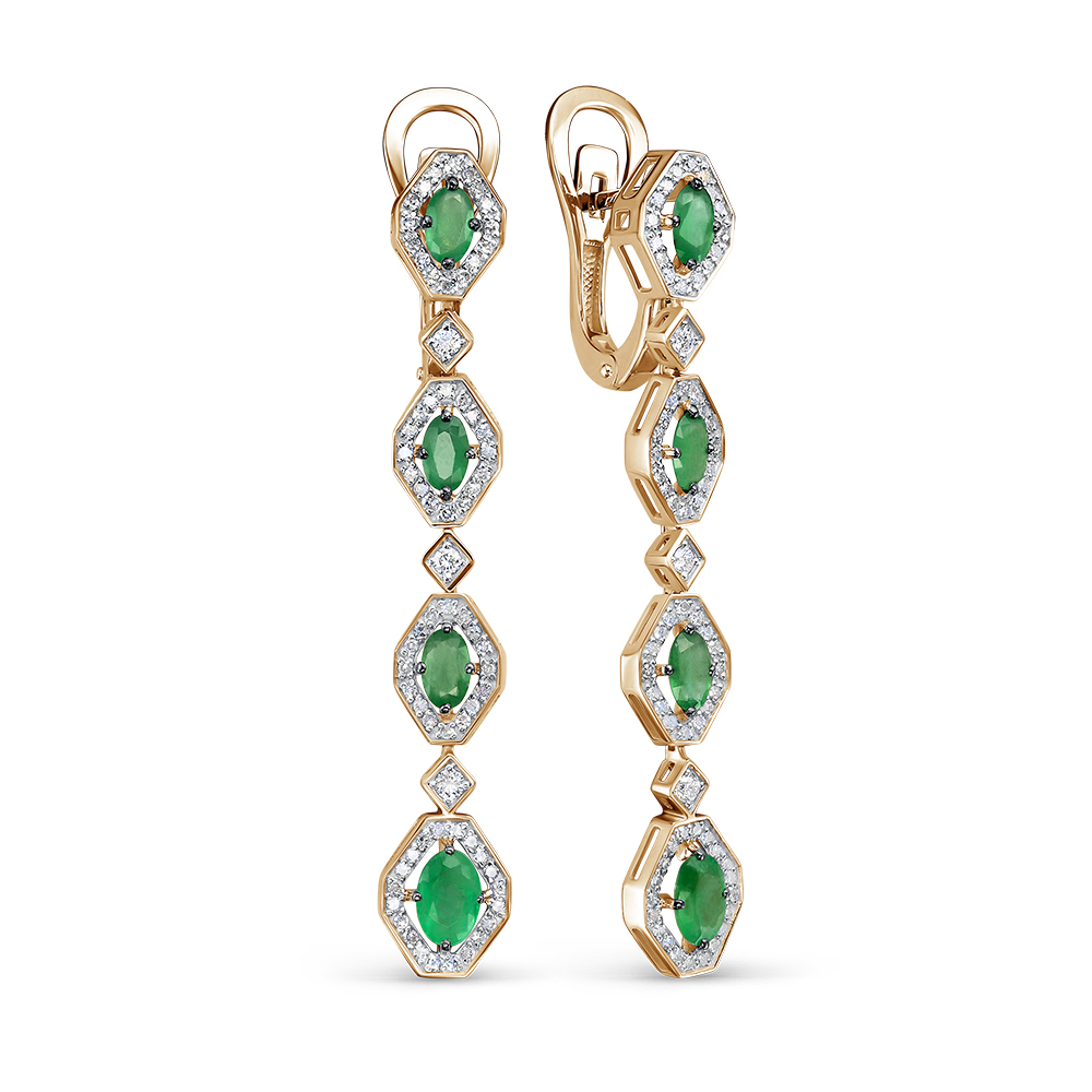 Золотые серьги с бриллиантами природными и изумрудами природными