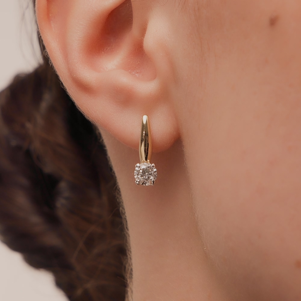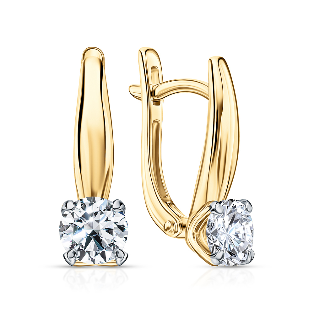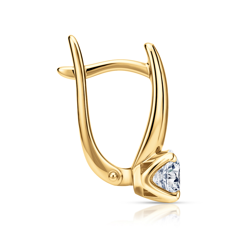 Серьги с 2 бриллиантами выращенными, 1.1 карат, огранка круг 57 граней, цвет 4, чистота 5, тип огранки А;