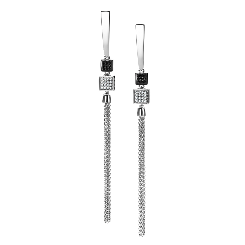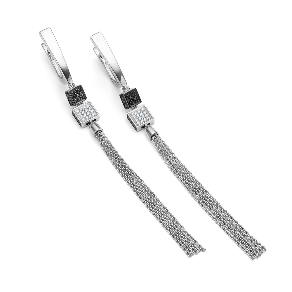 Золотые серьги с бриллиантами и бриллиантами чёрными природными
