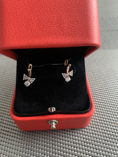 В редких случаях характеристики украшения или упаковка могут иметь отличия от представленных на фото или в описании.Серьги, вставка: фианитом бесцветным;
