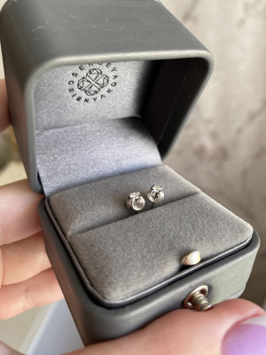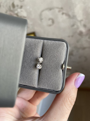 Самые любимые серьги. Сочетание белого золота и бриллиантов всегда выглядит дорого и изысканно.Не маленькие, на ушке заметные. Крепление камня интересное. На