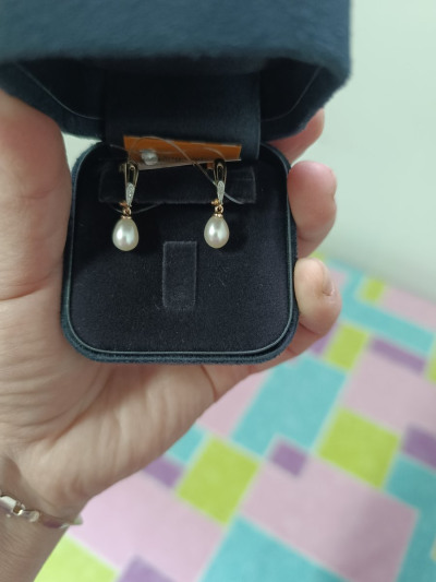 Серьги аккуратные золотые с бриллиантами и жемчугом красивые 👍 рекомендую