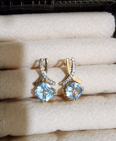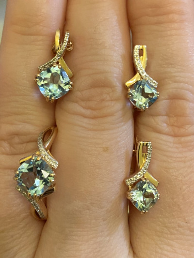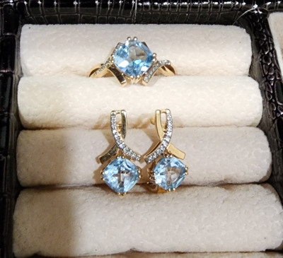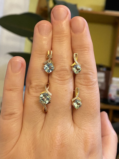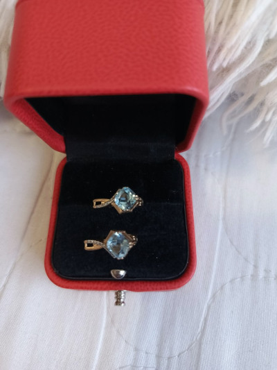 Серьги не громоздкие, ношу на работу. Собрала весь комплект. Утонченный дизайн, бриллиантики удачно дополняют топазы. Размер камней в серьгах немного меньше, чем в камнях. Надо регулярно чистить, тогда топазы будут выглядеть прозрачными.