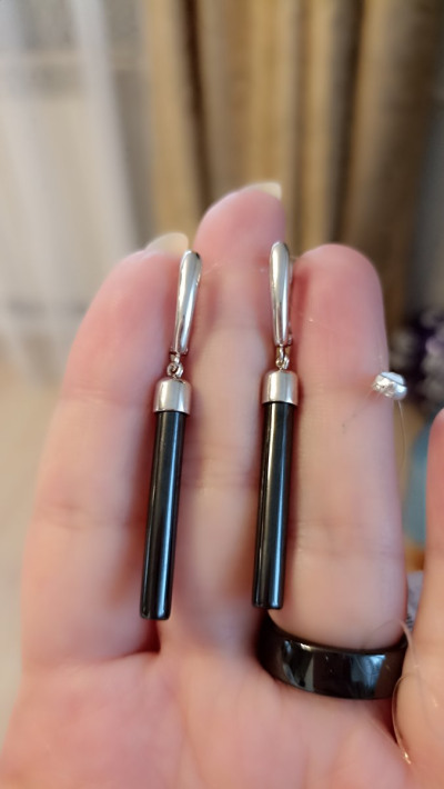 Искала сережки с чёрной керамикой в комплект к кольцу. В эти влюбилась практически с первого взгляда. Переживала, что уши не примут серебро, но все в порядке. Смотрятся очень стильно. Покупкой довольна.