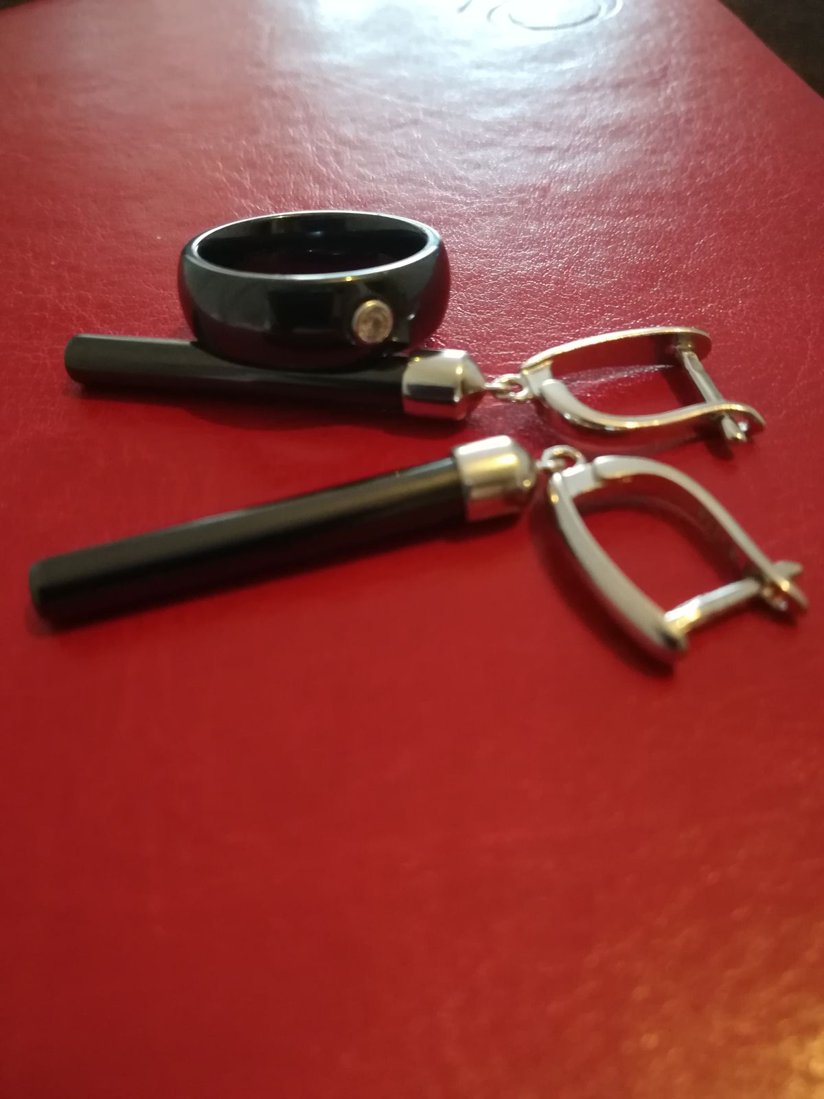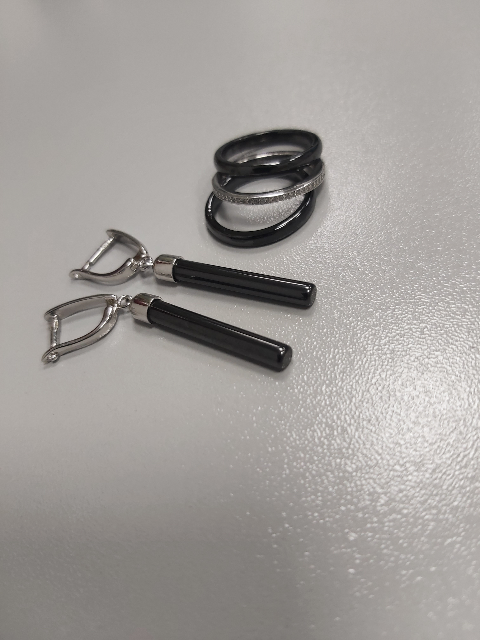 Серьги серебро с керамикой.стиль минимализм. хорошо смотрятся, лучше выглядит при ношении чем визуально на прилавке.рекомендую тем, кто любит стиль и простоту с изюминкой. хорошо подходит кольцо из трех. рекомендую как комплект