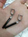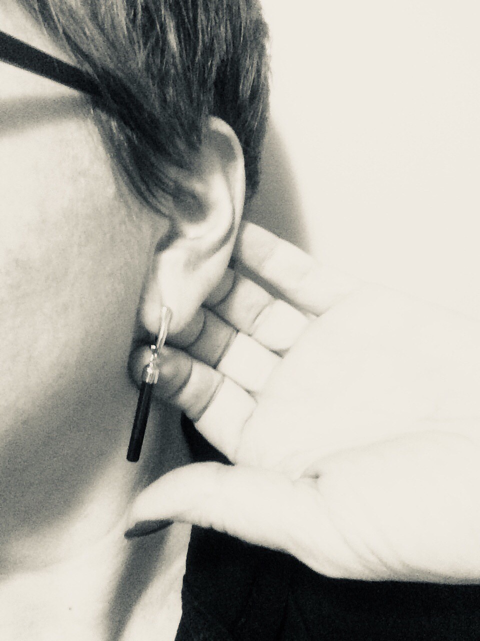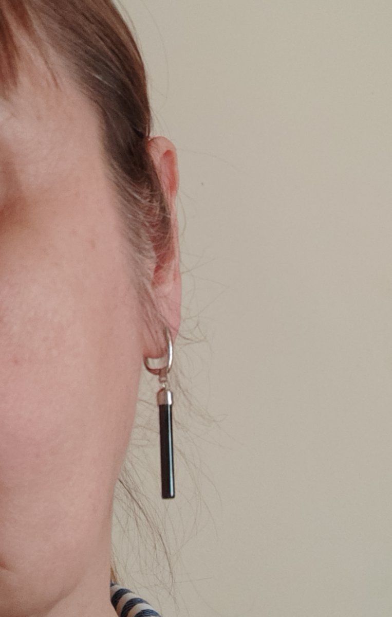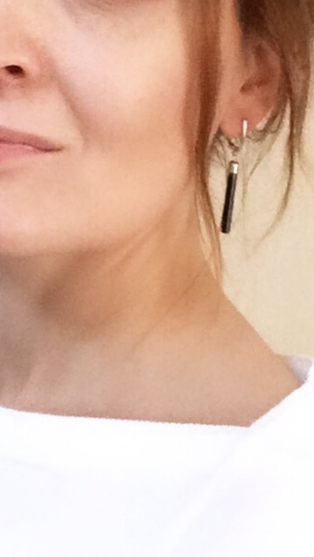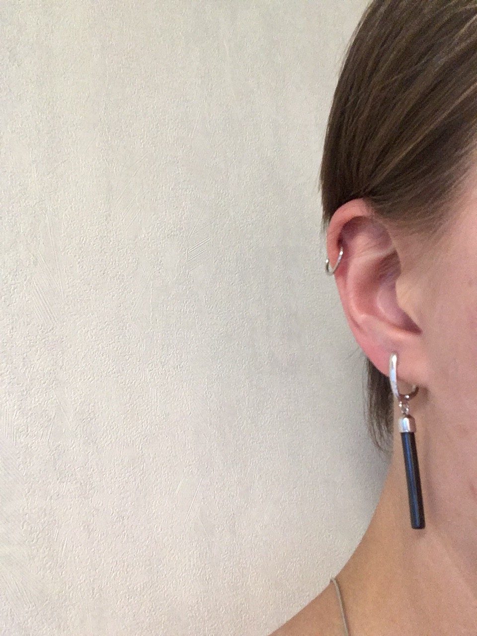 Лаконичные серьги, подойдут везде. Тонкий черный цилиндрик подойдет и под строгое платье и рабочее настроение и джинсы и желание похулиганить. Гладкие, не зацепятся за шарф, на осень-зиму идеальные.