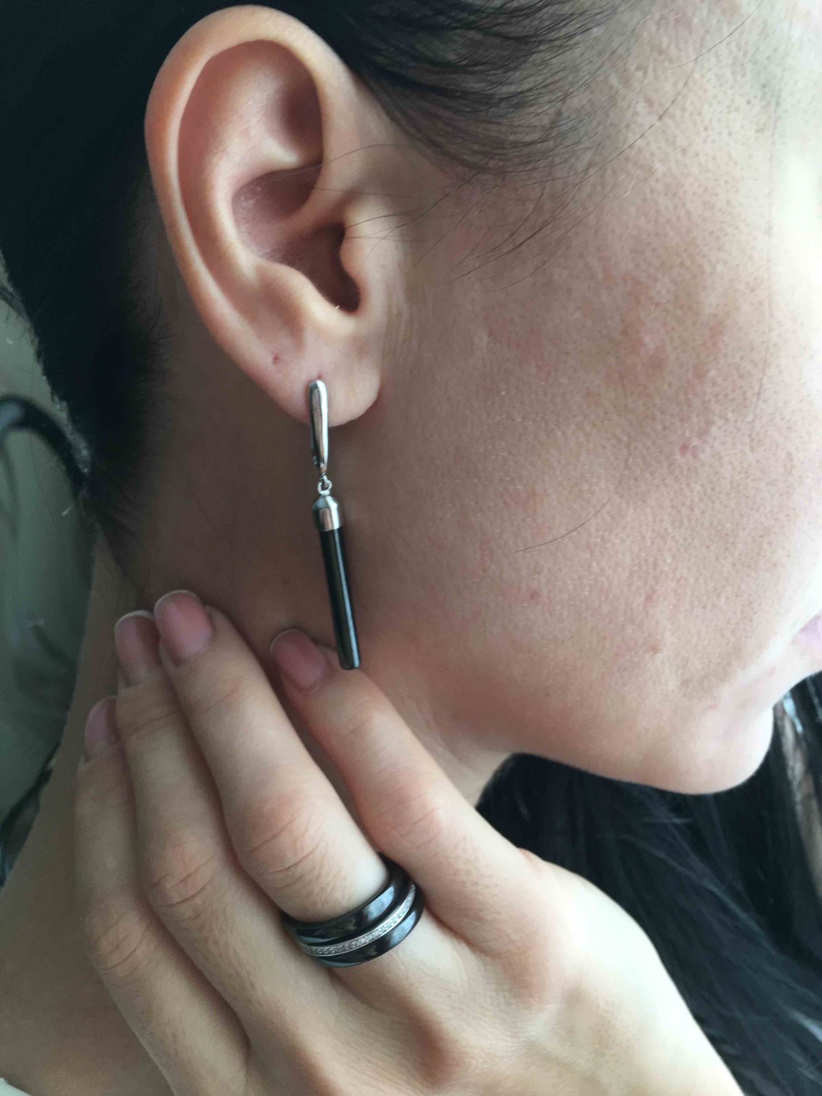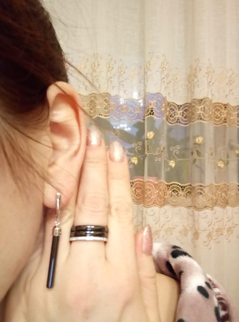 Влюбилась в эти серьги с первого взгляда. Форма и размер - идеольны. Очень удобный замок. Подумываю к ним купить керамическое кольцо.