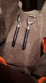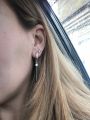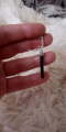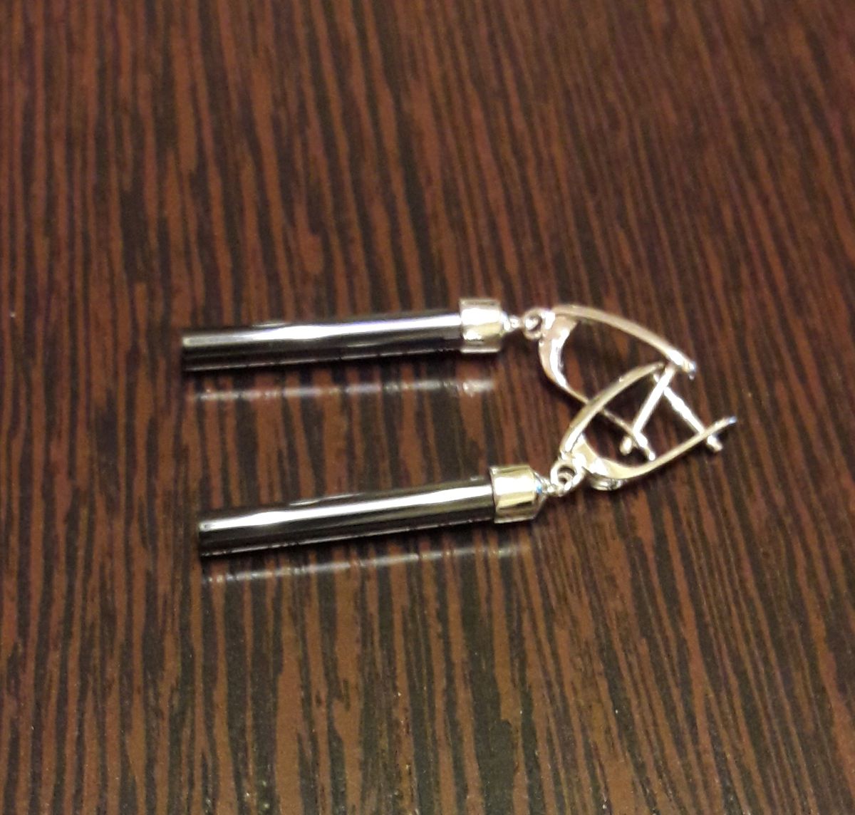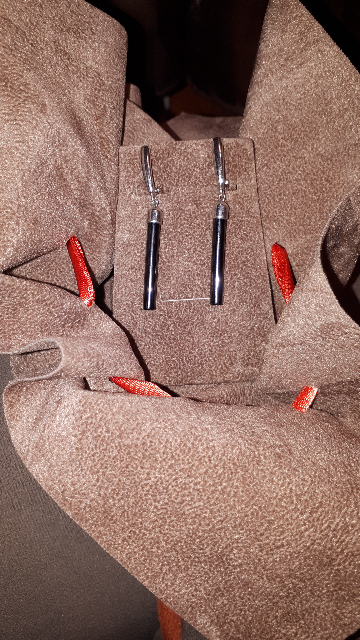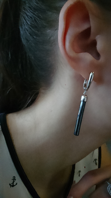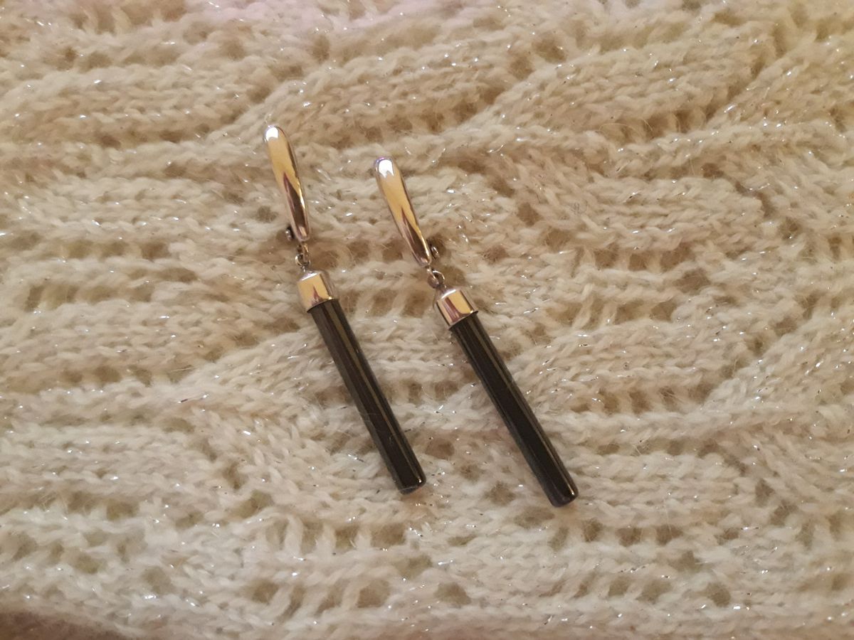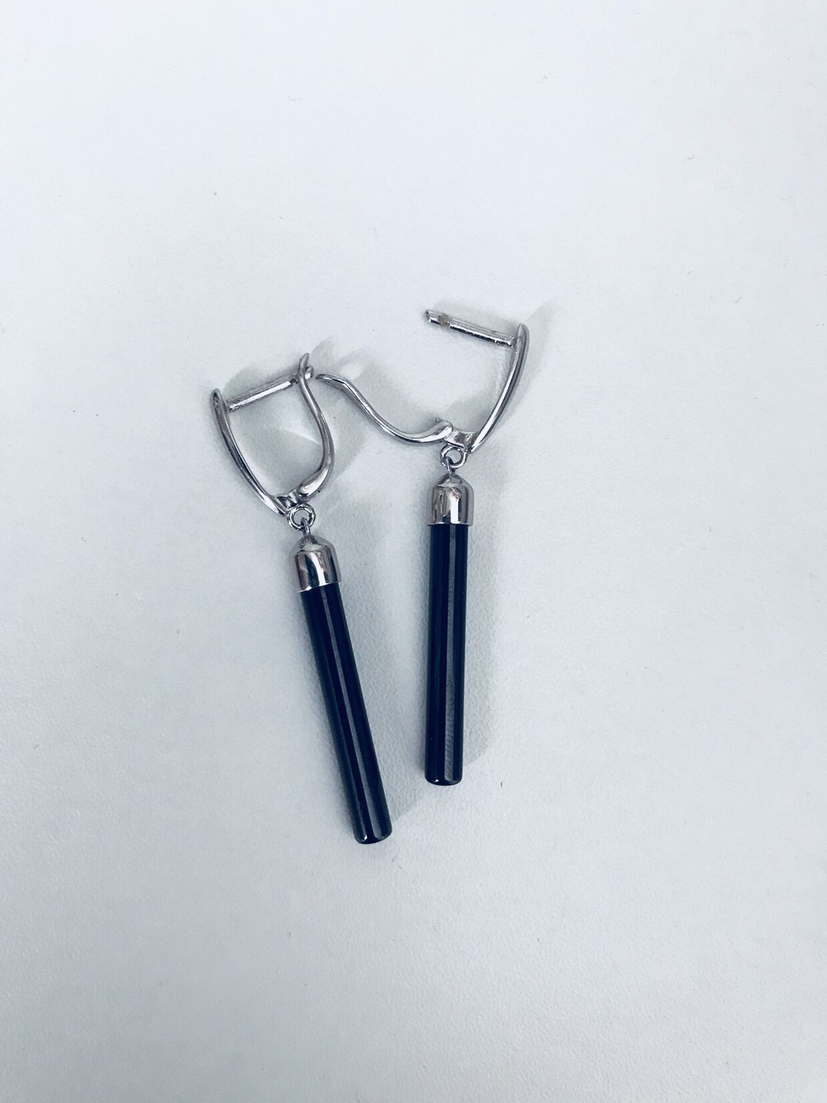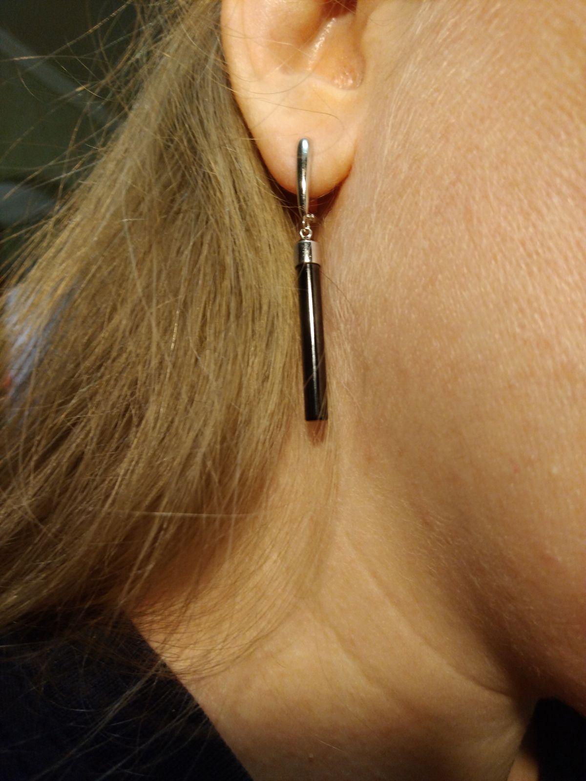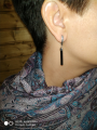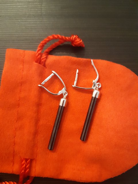 Эти серьги купила в пару к кулону в виде черной палочки с серебряной отделкой, долго искала и нашла здесь! получился чудесный комплект! серьги немного тяжеловаты, но в этом их прелесть, застежка хорошая, крепкая.Спасибо!