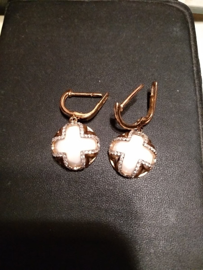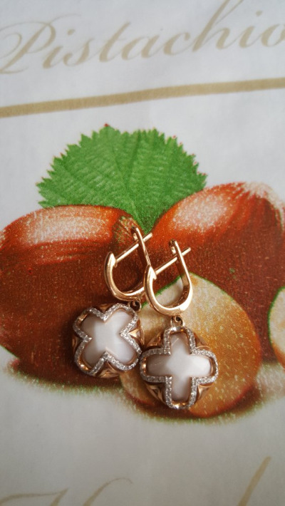 Золотые серьги с бриллиантами природными и агатом природным