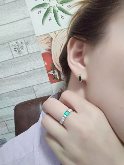 Серьги хоть и с гидротермальным изумрудом но смотрятся очень привлекательно. Они и не широкие и не тонкие вполне то что надо.Если кто сомневается брать или не брать очень рекомендую.