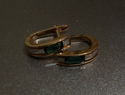 Золотые серьги с бриллиантами природными и изумрудом природным
